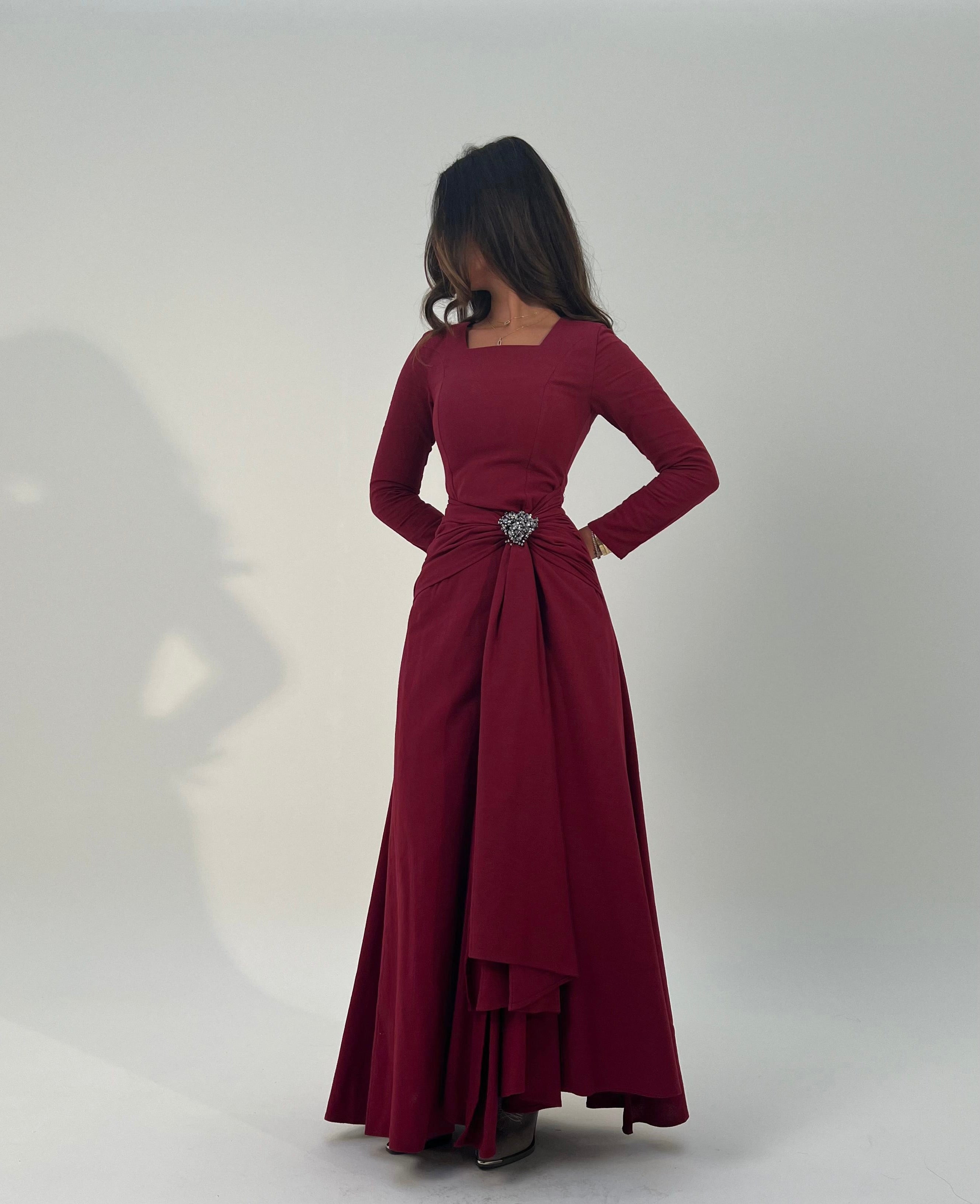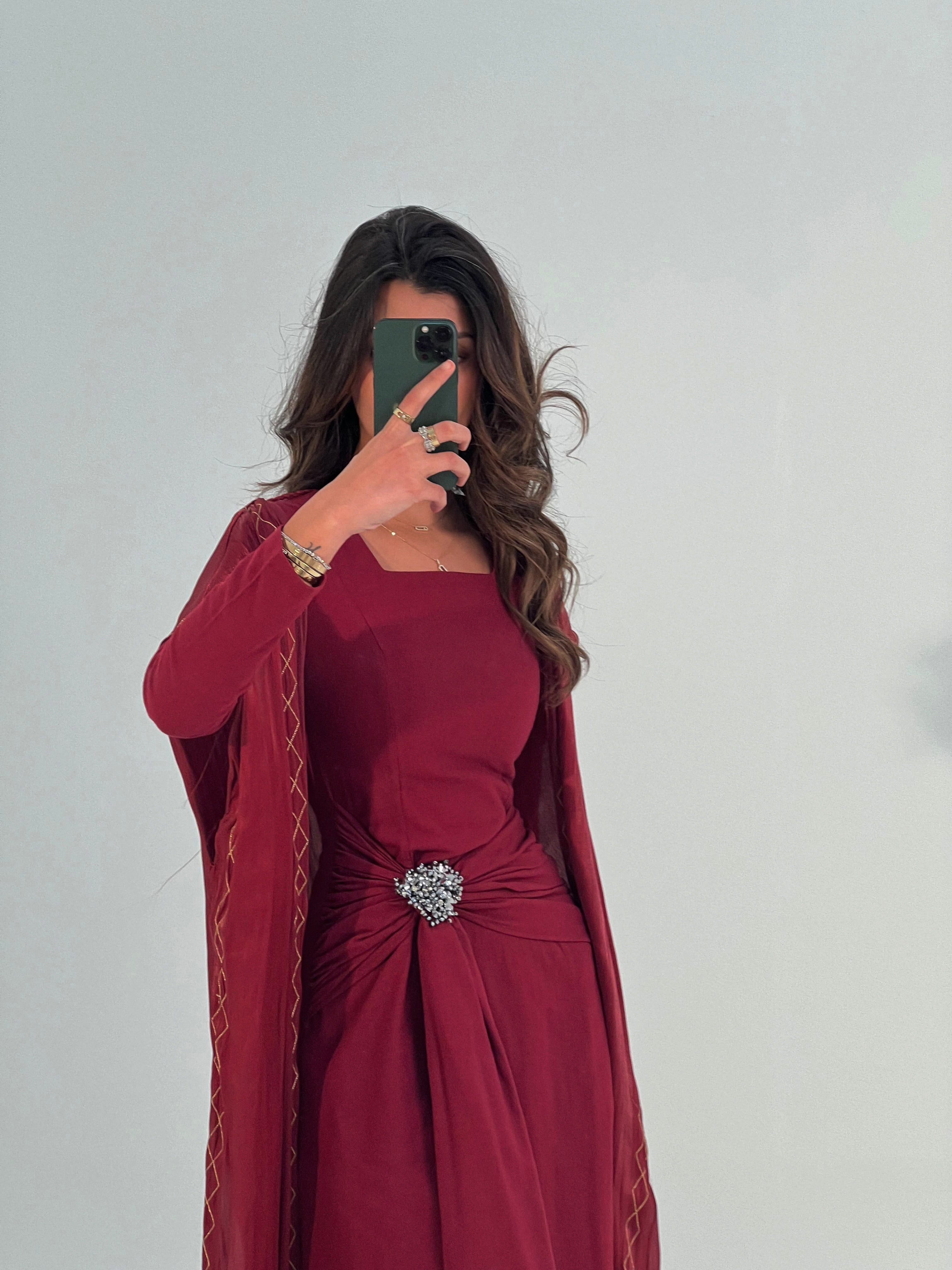 The burgundy color brings warmth and richness — ideal for evening outings, family gatherings, or special occasions.