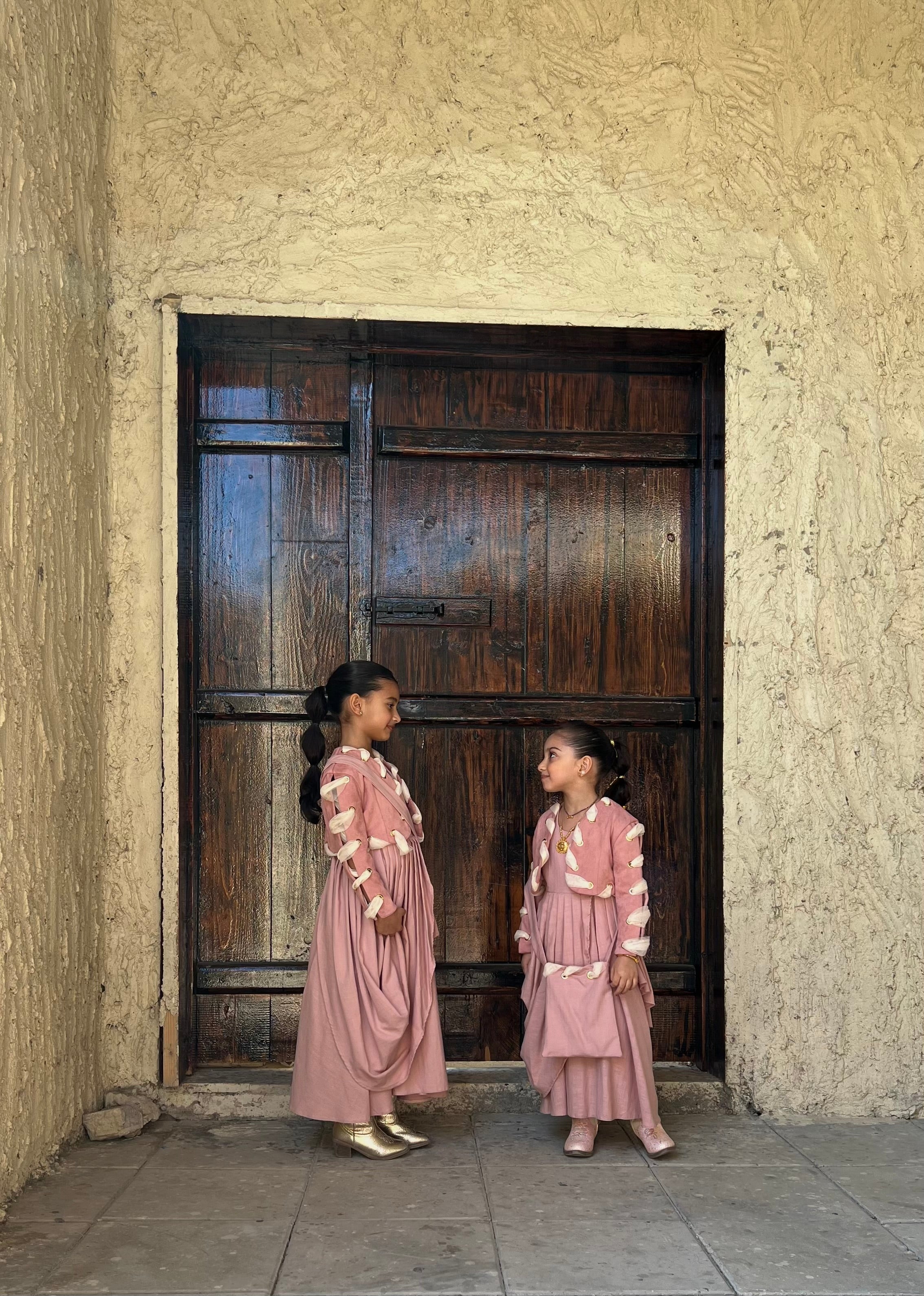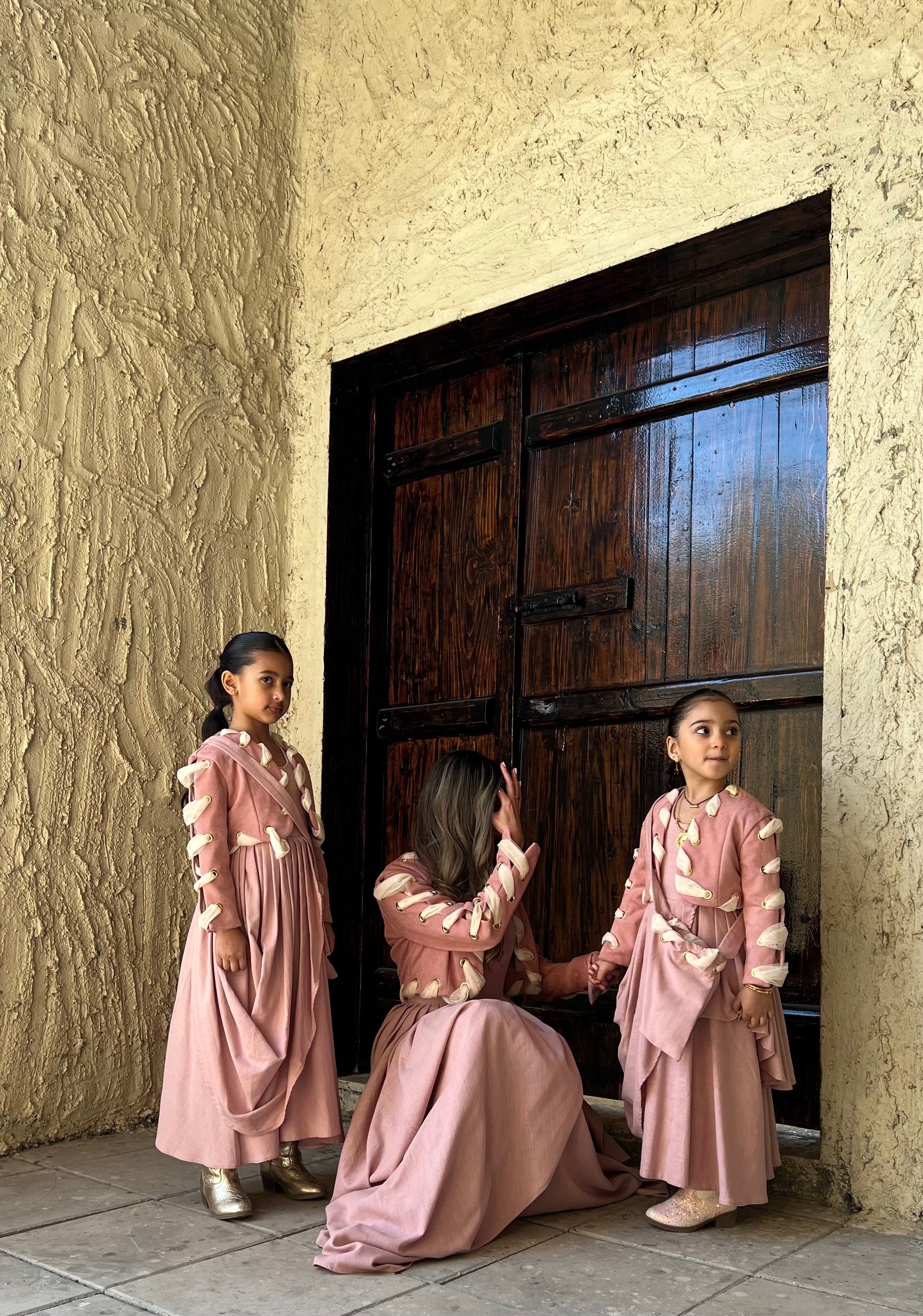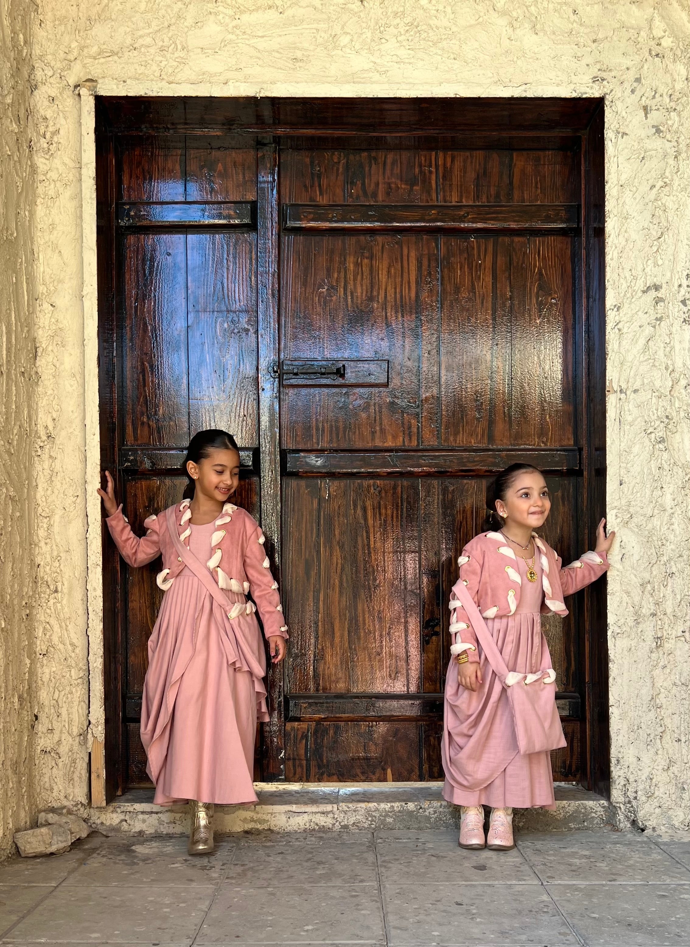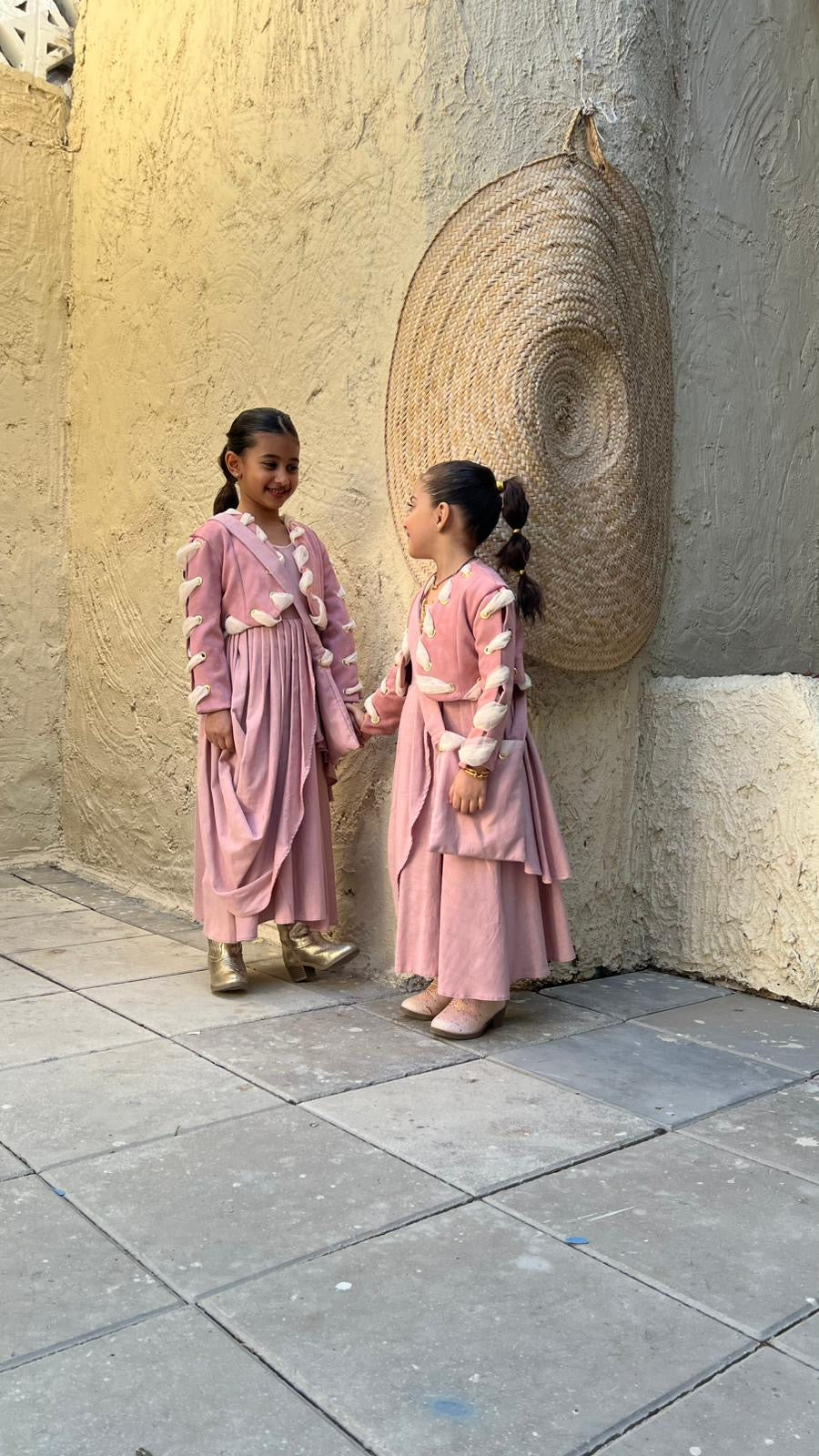 The Mini Amraya Set is a graceful blend of softness and elegance, designed for little girls who love refined details.