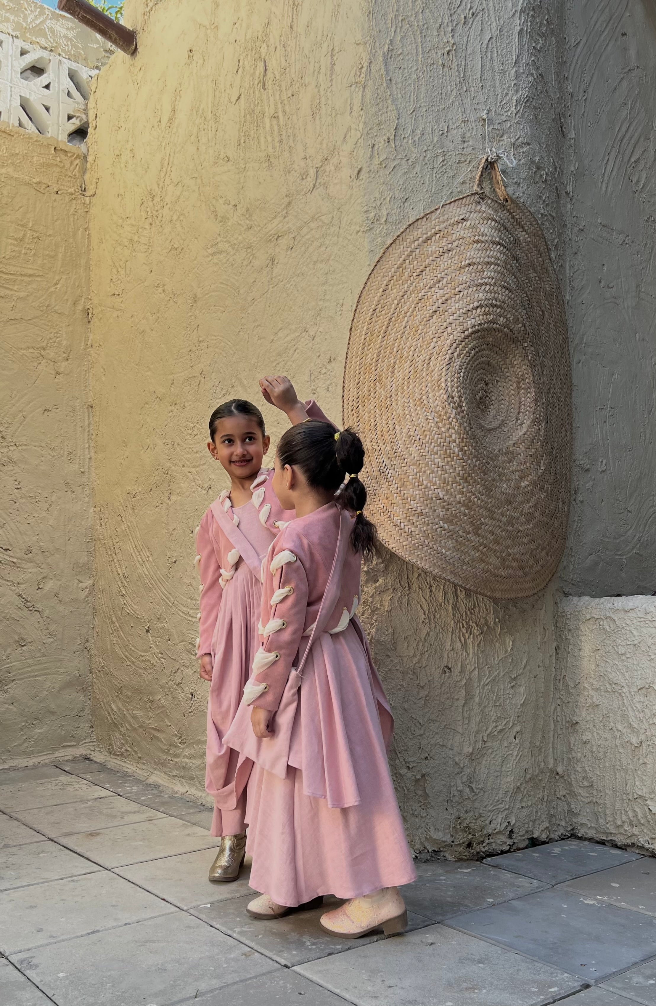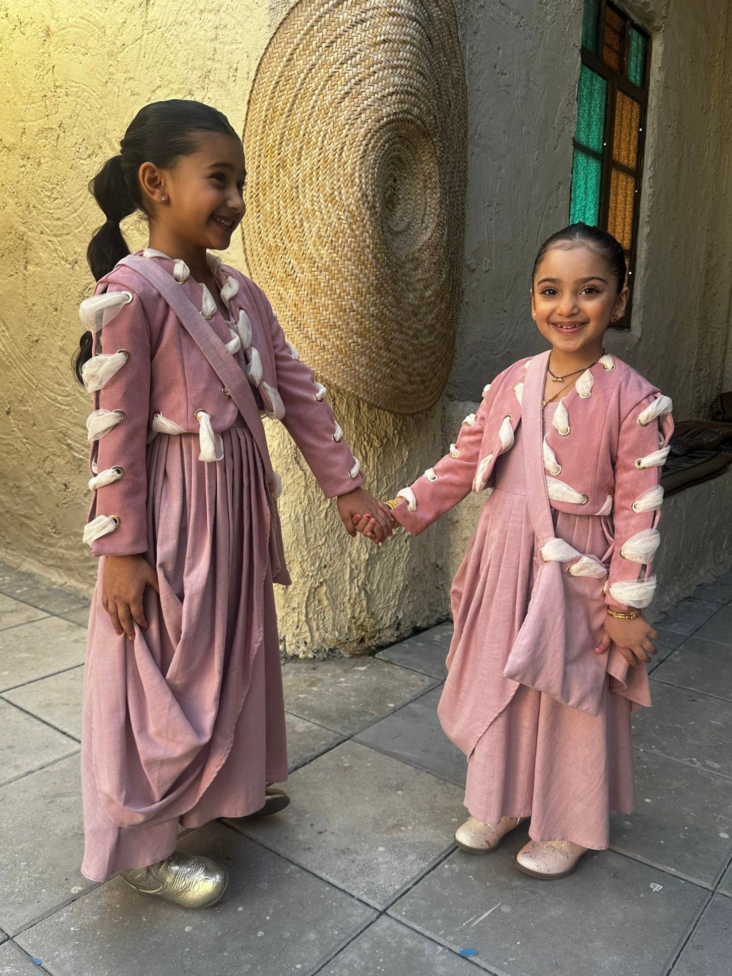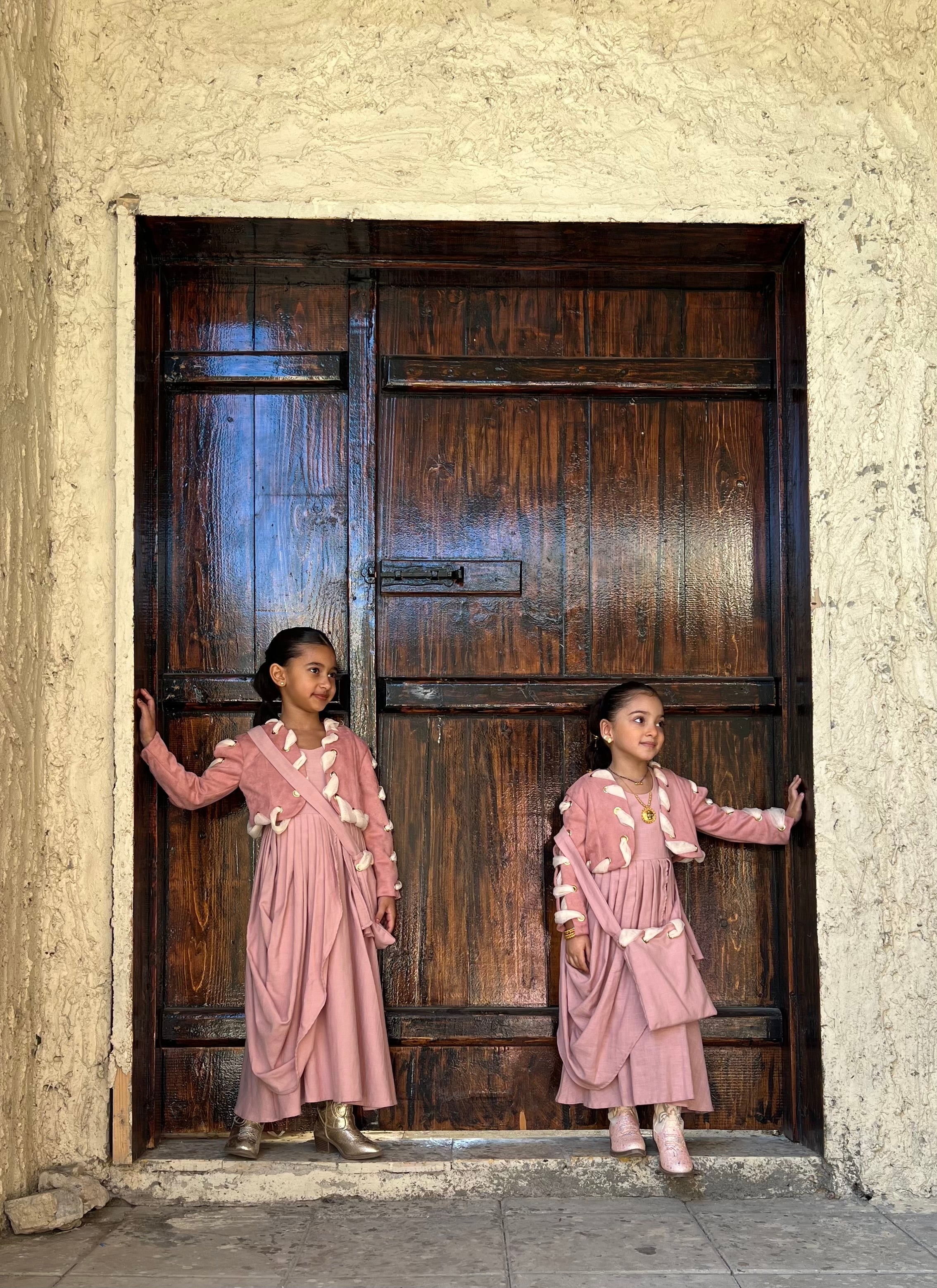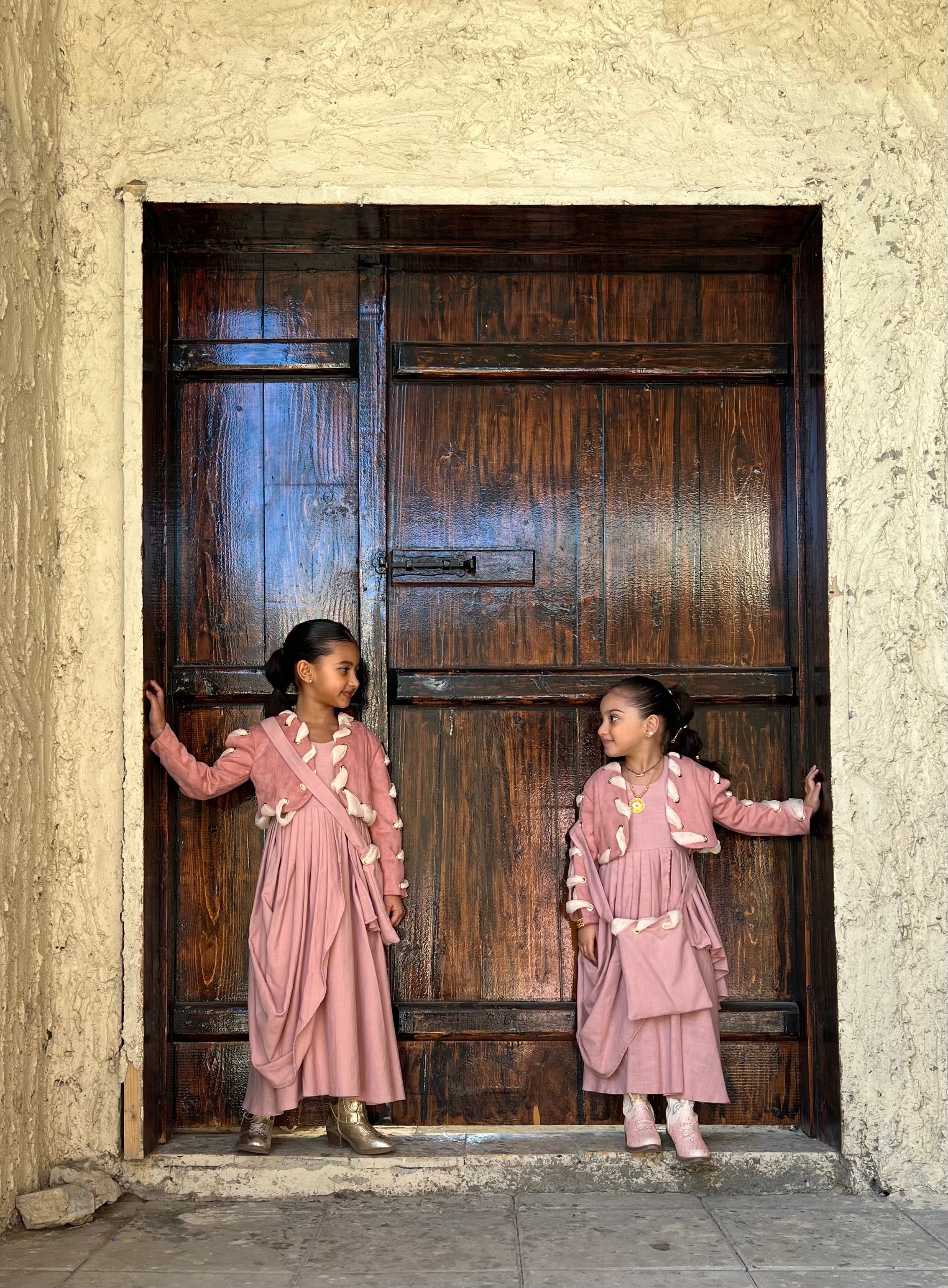 The Mini Amraya Set is a graceful blend of softness and elegance, designed for little girls who love refined details.
